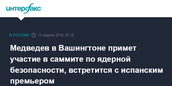 Медведев в Вашингтоне примет участие в саммите по ядерной безопасности, встретится с испанским премьером
