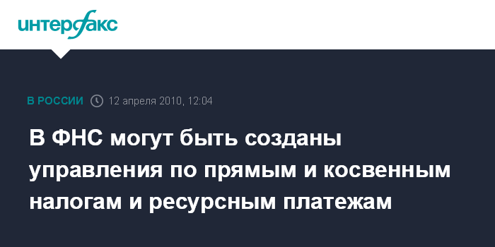 осква. 12 апреля. INTERFAX.RU - В структуре Федеральной налоговой службы (ФНС) РФ могут быть созданы специальные управления по прямым и косвенным налогам и по ресурсным платежам, сообщил журналистам глава службы Михаил Мишустин.
