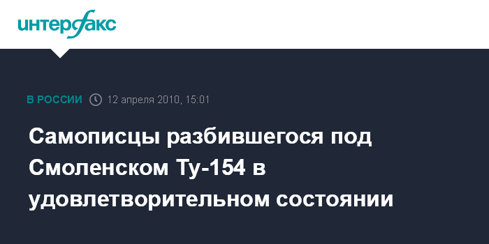 Самописцы разбившегося под Смоленском Ту-154 в удовлетворительном состоянии
