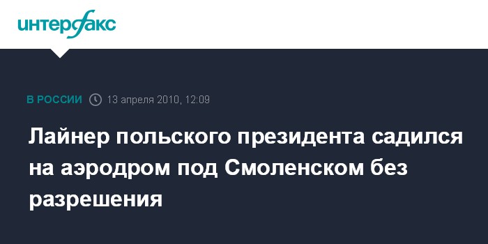 Лайнер польского президента садился на аэродром под Смоленском без разрешения