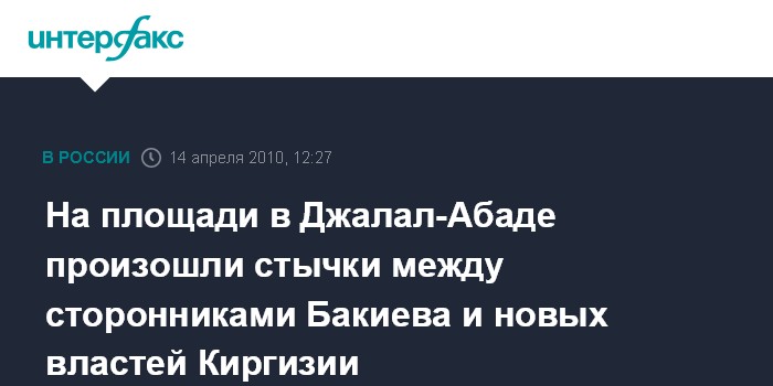 Москва. 14 апреля. INTERFAX.RU - На центральной площади Джалал-Абада, где собрались сторонники президента Курманбека Бакиева, произошли потасовки с его противниками, пришедшими на митинг.