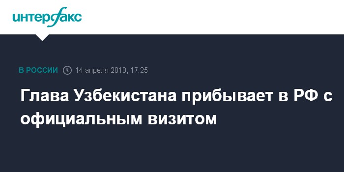 Москва. 14 апреля. INTERFAX.RU – Официальный визит президента Республики Узбекистан Ислама Каримова в Российскую Федерацию состоится 19-20 апреля, сообщила в среду пресс-служба президента России.