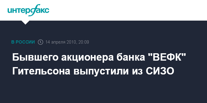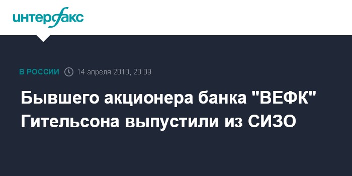 Бывшего акционера банка "ВЕФК" Гительсона выпустили из СИЗО