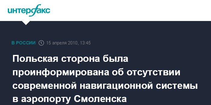 Польская сторона была проинформирована об отсутствии современной навигационной системы в аэропорту Смоленска