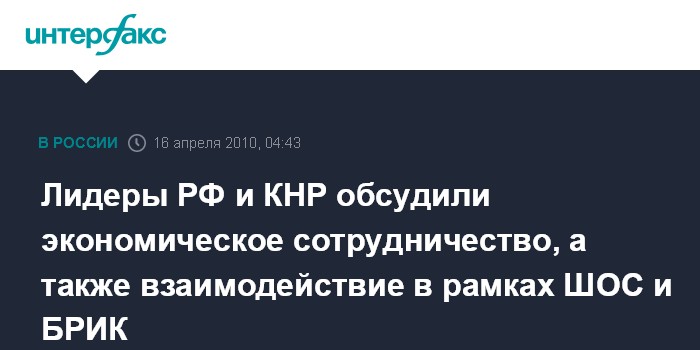 По словам С.Приходько, Д.Медведев и Ху Цзиньтао обсудили взаимодействие двух стран в рамках ШОС, БРИК, ключевые международные вопросы.