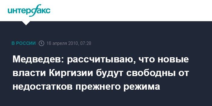 Медведев: рассчитываю, что новые власти Киргизии будут свободны от недостатков прежнего режима