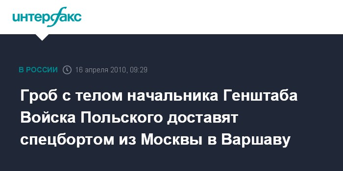 Гроб с телом начальника Генштаба Войска Польского доставят спецбортом из Москвы в Варшаву