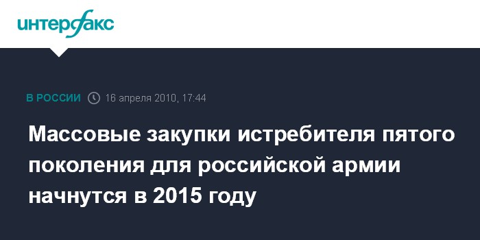 Массовые закупки истребителя пятого поколения для российской армии начнутся в 2015 году