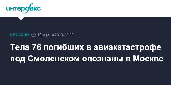 Тела 76 погибших в авиакатастрофе под Смоленском опознаны в Москве