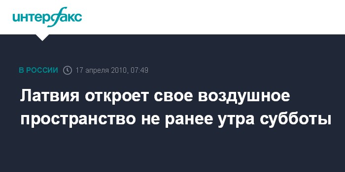 Рига. 17 апреля. ИНТЕРФАКС/BNS - Воздушное пространство Латвии точно будет закрыто до 09:00 (10:00 мск) субботы, 17 апреля, сообщил замдиректора Агентства гражданской авиации, руководитель отдела аэронавигации Марис Черненок агентству BNS.