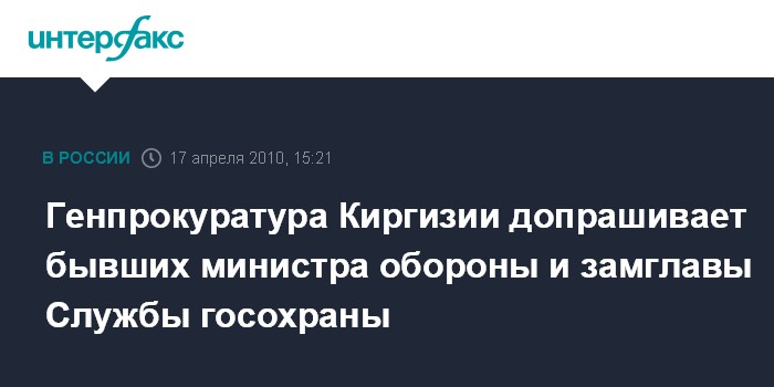 Москва. 17 апреля. INTERFAX.RU - В генеральной прокуратуре Киргизии начался допрос экс-министра обороны Бактыбека Калыева и бывшего заместителя председателя службы государственной охраны страны Данияра Дунганова.