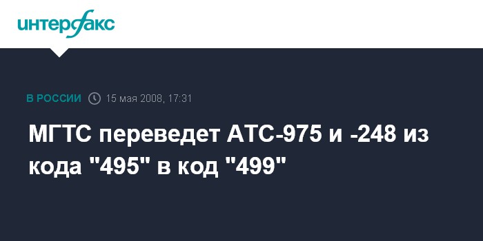 МГТС переведет АТС-975 и -248 из кода "495" в код "499"