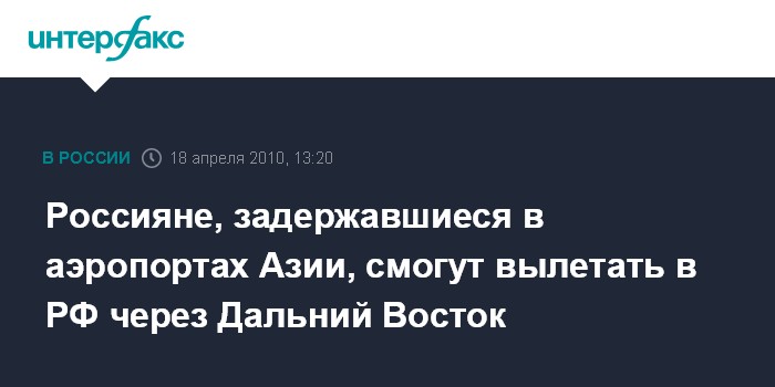 Огарево. 18 апреля. INTERFAX.RU - Российские пассажиры, которые не могут вылететь из аэропортов Азии, смогут вернуться в РФ через Дальний Восток, сообщил министр транспорта Игорь Левитин на совещании у премьера Владимира Путина по ситуации с авиаперелетами.