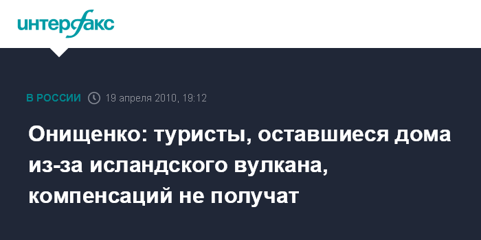Онищенко: туристы, оставшиеся дома из-за исландского вулкана, компенсаций не получат