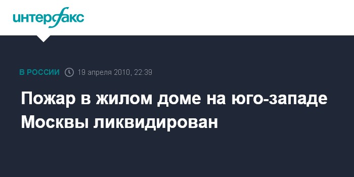 Москва. 19 апреля. ИНТЕРФАКС-МОСКВА - В Москве в 22:18 ликвидирован пожар в 7-этажном жилом доме в 1-м Рощинском проезде, дом 8.