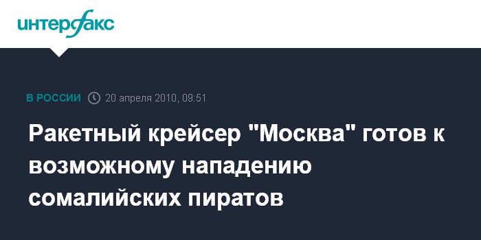 Москва. 20 апреля. INTERFAX.RU - Флагман Черноморского флота РФ Гвардейский ракетный крейсер "Москва" успешно прошел Красное море и вышел в Аденский залив, сообщили "Интерфаксу-АВН" во вторник в группе информационного обеспечения ЧФ.