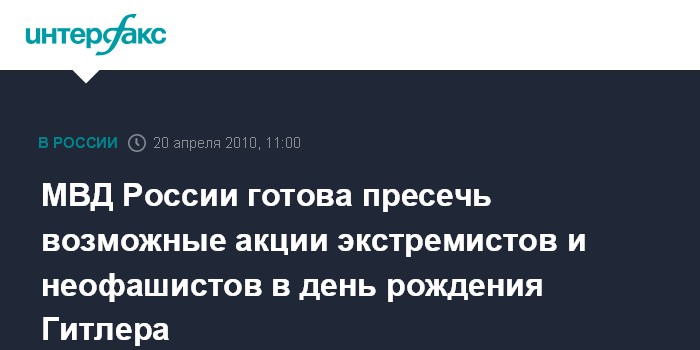 МВД России готова пресечь возможные акции экстремистов и неофашистов в день рождения Гитлера