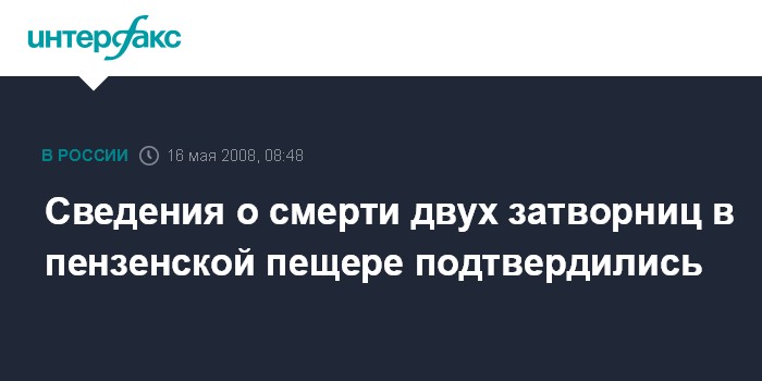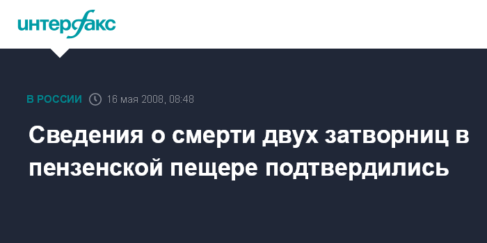 Москва. 16 мая. INTERFAX.RU - Спасатели МЧС и сотрудники милиции в ночь на пятницу завершили работы по поиску тел двух затворниц, которые предположительно скончались во время пребывания в пещере в Пензенской области.