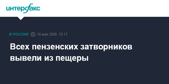 Москва. 16 мая. INTERFAX.RU - Все затворники выведены из пещеры в Пензенской области, где они добровольно скрывались с ноября 2007 года.