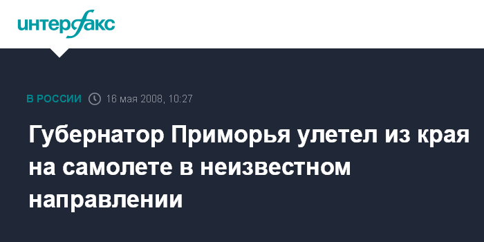 Губернатор Приморья улетел из края на самолете в неизвестном направлении