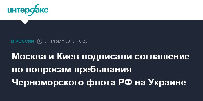 Москва. 21 апреля. INTERFAX.RU – Россия и Украина подписали соглашение по вопросам пребывания Черноморского флота РФ на территории Украины.