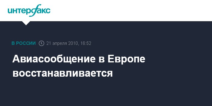 Брюссель. 21 апреля. INTERFAX.RU - Авиасообщение над Европой, нарушенное в результате извержения вулкана в Исландии, постепенно возвращается в нормальное русло.