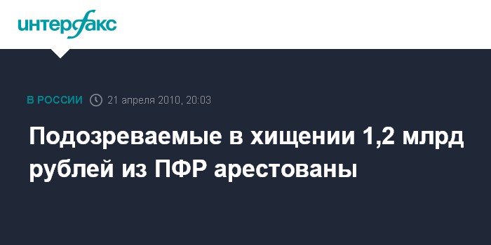 Москва. 21 апреля. INTERFAX.RU - Тверской суд Москвы выдал санкции на арест двух подозреваемых по делу о хищении 1,2 млрд рублей из Пенсионного фонда РФ.