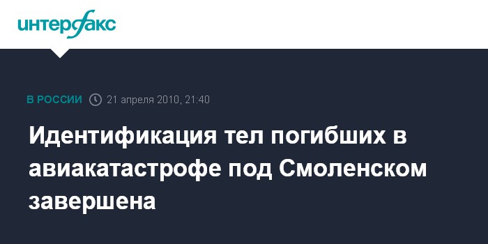 Идентификация тел погибших в авиакатастрофе под Смоленском завершена