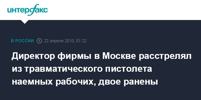 Москва. 22 апреля. ИНТЕРФАКС-МОСКВА - В центре Москвы на Пушкинской площади в здании издательского дома "Известия" директор строительной фирмы открыл огонь из пистолета по своим наемным рабочим из Киргизии, сообщил "Интерфаксу" источник в правоохранительных органах.