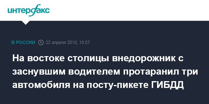 На востоке столицы внедорожник с заснувшим водителем протаранил три автомобиля на посту-пикете ГИБДД