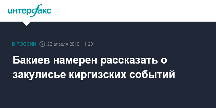 Как сообщил агентству "Интерфакс-Запад" источник в нынешнем ближайшем окружении Бакиева, "Курманбек Салиевич имеет намерение рассказать о закулисных нюансах событий, произошедших в Киргизии".