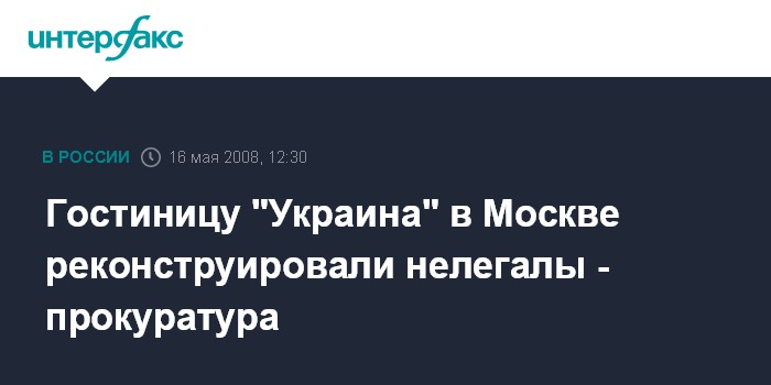 Москва. 16 мая. INTERFAX.RU - Нарушения в строительных работах по реконструкции гостиницы "Украина" выявила Дорогомиловская межрайонная прокуратура совместно с сотрудниками столичной госинспекции труда, инспекции по надзору за переустройством помещений в жилых домах по ЗАО, отдела УФМС по округу, сообщили "Интерфаксу" в пресс-службе Моспрокуратуры.