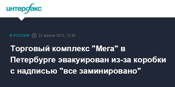 Москва. 6 июля. INTERFAX.RU – В Петербурге в четверг днем эвакуировали людей из торгового центра "Мега-Парнас" после обнаружения подозрительной коробки, сообщил "Интерфаксу" источник в правоохранительных органах.