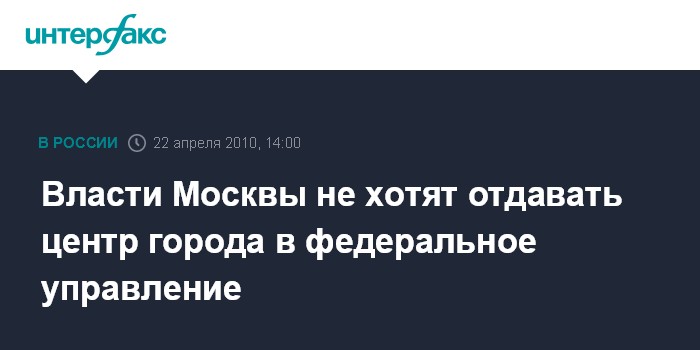 Москва. 22 апреля. INTERFAX.RU - Исполнительная и законодательная власти столицы категорически не согласны с мнением о том, что центр Москвы следует передать в федеральное управление.