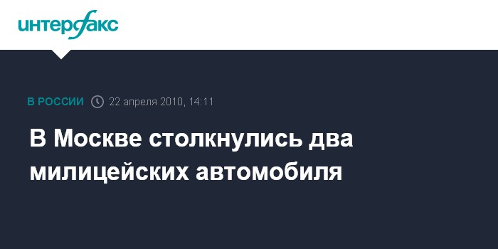 Москва. 22 апреля. INTERFAX.RU - В Москве в результате столкновения двух милицейских автомобилей госпитализированы три сотрудника столичного ГУВД, сообщил "Интерфаксу" источник в правоохранительных органах.