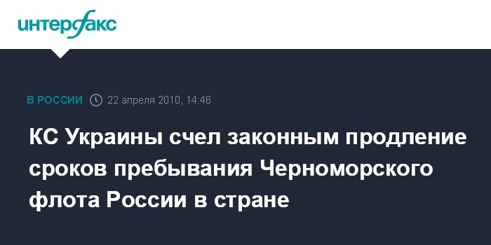 Москва. 22 апреля. INTERFAX.RU - Соглашение о продлении сроков пребывания Черноморского флота России на территории Украины конституционно, заявил украинский министр иностранных дел Константин Грищенко в четверг. "Вчера было решение Конституционного суда по представлению, которое было направлено по этому поводу еще в прошлом году. Оно достаточно четкое и понятное... таким образом, этот вопрос с юридической точки зрения, - конституционный по решению того же Конституционного суда", - сказал Грищенко.
