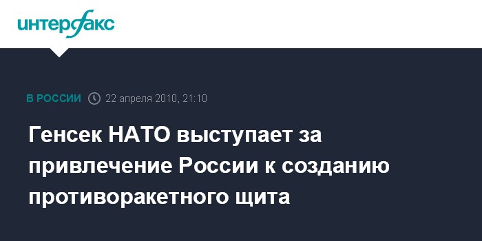 Таллин. 22 апреля. INTERFAX.RU - Генеральный секретарь НАТО Андерс Фог Расмуссен высказался за привлечение России к совместной с НАТО противоракетной обороне.