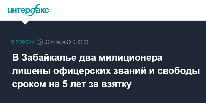 В Забайкалье два милиционера лишены офицерских званий и свободы сроком на 5 лет за взятку