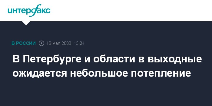 Санкт-Петербург. 16 мая. INTERFAX.RU - В предстоящие выходные дни в Петербурге и Ленинградской области немного потеплеет, сообщили "Интерфаксу" в Гидрометцентре города. По прогнозу синоптиков, в субботу над городом будет располагаться поле пониженного атмосферного давления. Ожидается слабый ветер, днем возможен кратковременный дождь.