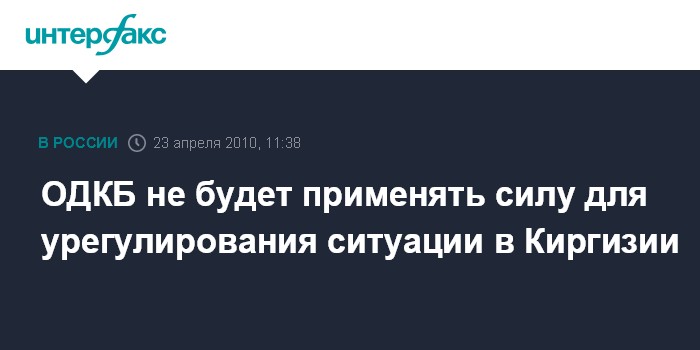 "Мы исходим из того, что нынешние события в Киргизии - это внутреннее дело этой страны. (...) Потенциал же ОДКБ может быть использован по решению совета ОДКБ против агрессии извне в отношении одного из участников ОДКБ", - сказал Н.Бордюжа.
