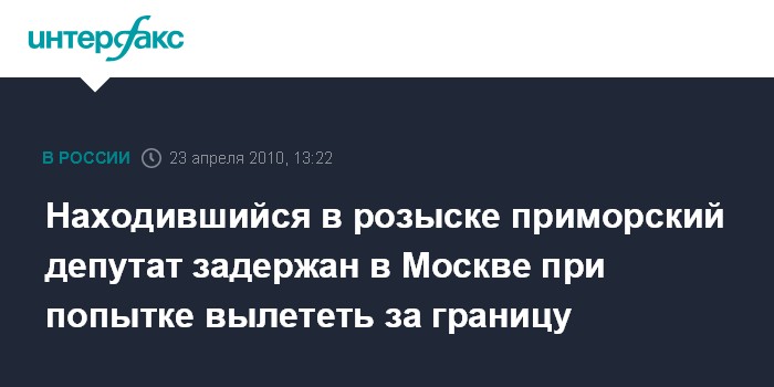 Находившийся в розыске приморский депутат задержан в Москве при попытке вылететь за границу
