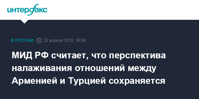 МИД РФ считает, что перспектива налаживания отношений между Арменией и Турцией сохраняется