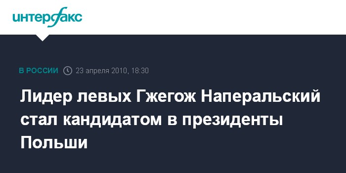 Варшава. 23 апреля. INTERFAX.RU - Лидер польской партии Союз демократических левых сил Гжегож Наперальский по итогам заседания управляющего совета партии выдвинут кандидатом для участия в президентских выборах, которые пройдут в стране 20 июня, сообщают в пятницу польские СМИ.