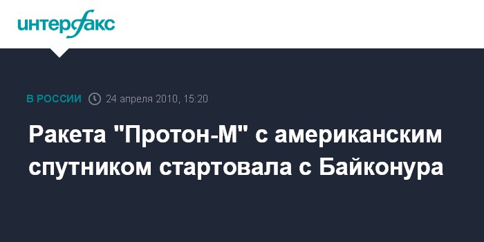 Москва. 24 апреля. INTERFAX.RU - Российская ракета-носитель тяжелого класса "Протон-М" с разгонным блоком "Бриз-М" и американским телекоммуникационным спутником SES-1 стартовала с космодрома Байконур (Казахстан).