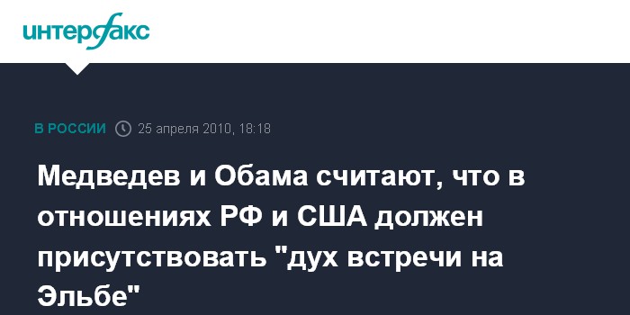 Медведев и Обама считают, что в отношениях РФ и США должен присутствовать "дух встречи на Эльбе"