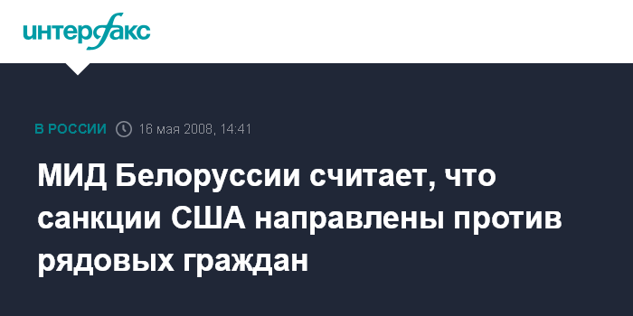 Минск. 16 мая. INTERFAX.RU - Очередные санкции со стороны США в отношении белорусских предприятий заключаются в том, что будут конкретизированы "адресаты" ранее принятых мер - так считают в министерстве иностранных дел Белоруссии.