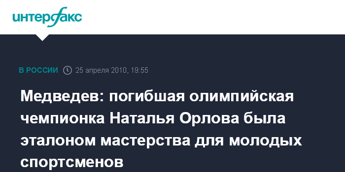 Медведев: погибшая олимпийская чемпионка Наталья Орлова была эталоном мастерства для молодых спортсменов