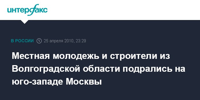 Как сообщил "Интерфаксу" источник в правоохранительных органах, сигнал о массовой драке у бытовок строителей в дворе между домами N 14 по Севастопольскому проспекту и N 11 Большой Черемушкинской улице поступил в милицию около 22:10 мск.