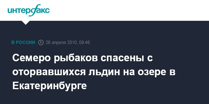 Москва. 26 апреля. INTERFAX.RU - В Екатеринбурге семеро местных жителей, вышедших на подледную рыбалку, оказались на дрейфующих льдинах. "В службу спасения Свердловской области поступило сообщение, что на озере Шарташ на двух льдинах, оторвавшихся от берега, находятся рыбаки. На спасение рыбаков немедленно выехали 7 спасателей и 2 единицы техники. На лодках спасатели доставили на берег семерых рыбаков", - сообщает в понедельник пресс-служба ГУ МЧС РФ по Свердловской области.
