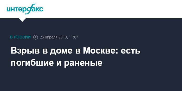 Москва. 26 апреля. INTERFAX.RU - На севере Москвы в д.64 по Дмитровскому шоссе произошел взрыв. Как сообщил "Интерфаксу" источник в правоохранительных органах, взрыв прогремел в 10:40. По предварительным данным, есть разрушения. Один человек погиб, двое ранены.